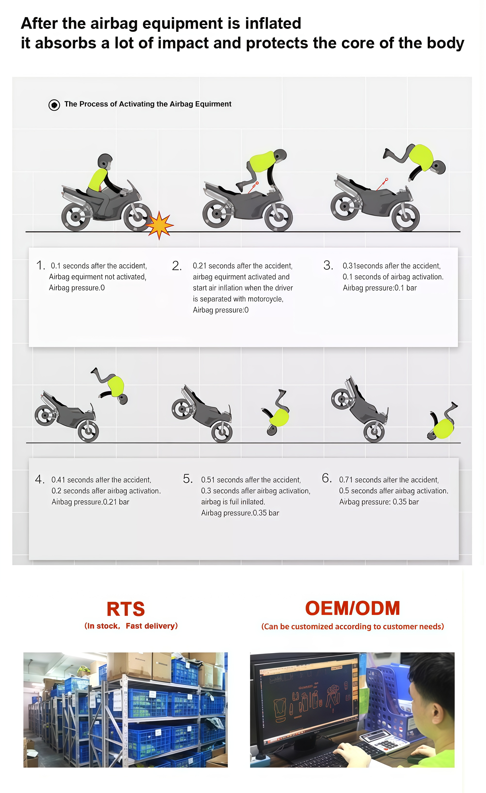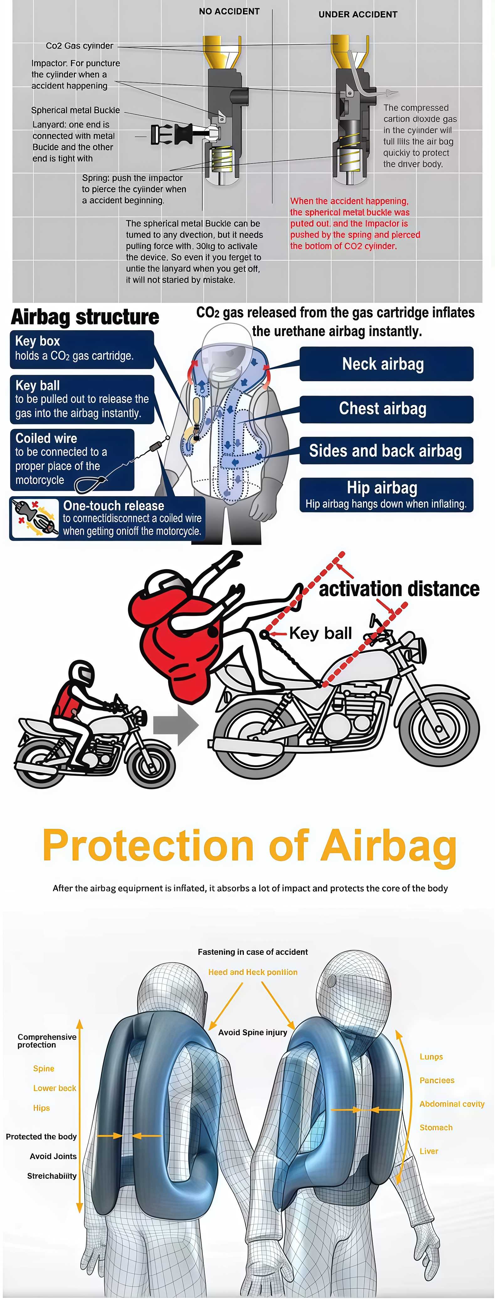 Our equestrian airbag vest meets EU standard. Designed with versatility in mind, it has a unisex style, making it suitable for riders of all genders. For comfort, the vest features stretchy sides that conform to the body's movements, while breathable mesh on the sides and middle back ensures proper air circulation, keeping the wearer cool and dry. One of its remarkable features is the rapid response time. The detection mechanism activates in less than 100 milliseconds, enabling immediate protection when danger looms.